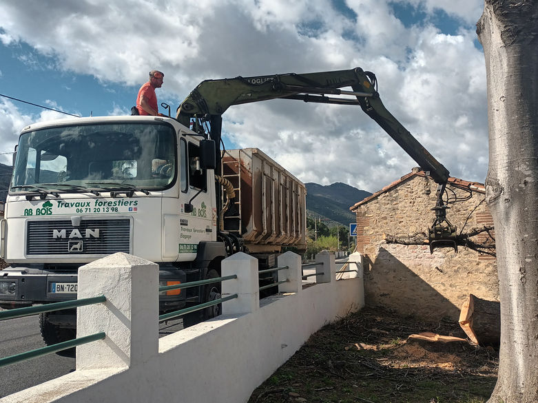 Poids lourd 26T avec grue forestier benne 25m2 et plateaux forestier